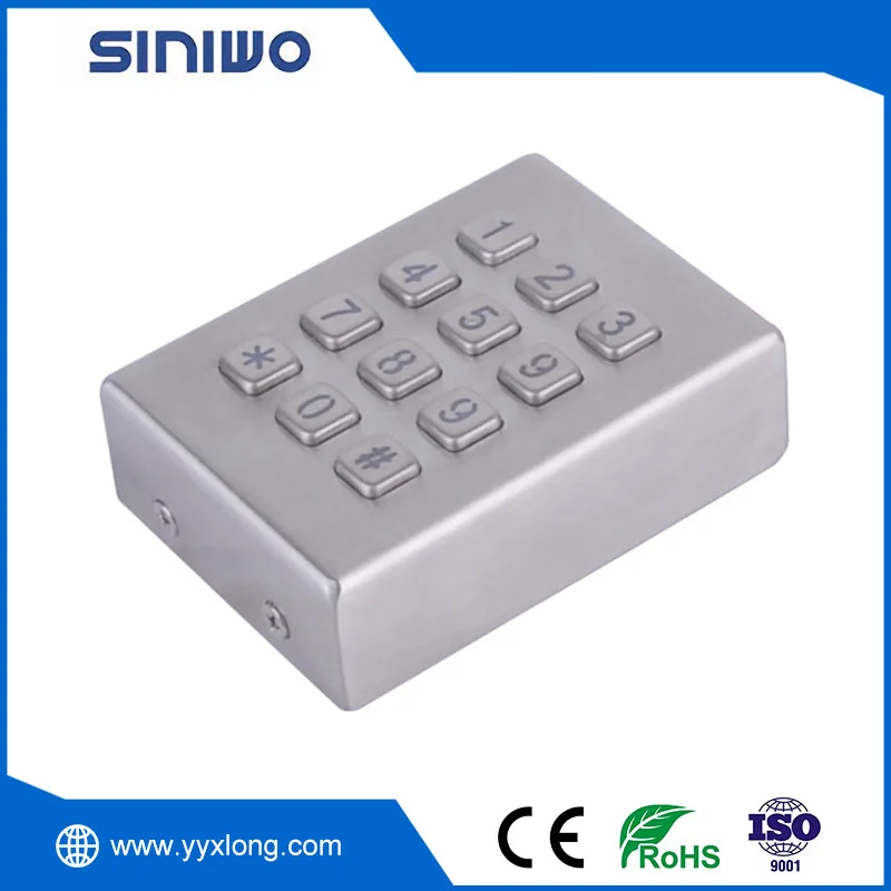 1. This 12 keys digital industrial keypad of SINIWO made in China with easy-to-disassemble stainless steel is high-quality, dustproof, waterproof, corrosion-proof, explosion-proof and prying-proof, and can work normally in harsh environments. It is mainly designed for outdoor telephone entry system and the metal enclosure, keys and internal rear panel are built from durable SUS304# stainless steel with high resistance to impact and vandalism and is also sealed to IP67.