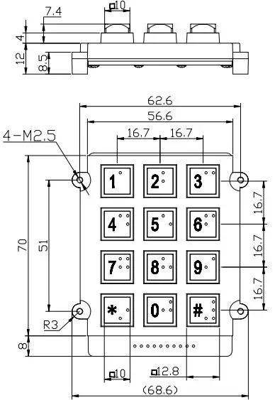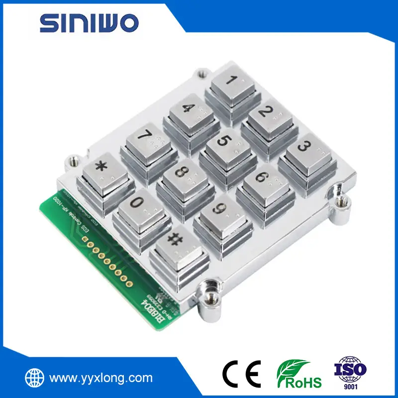 The 3×4 industrial keypad has prominent key marks to facilitate touch recognition by blind customers. Except for the prominent braille characters, the other keypad surfaces are smooth and beautiful, compact and textured, wear-resistant and waterproof, and suitable for use in public places. When we designed the 3×4 industrial keypad , we investigated many usage habits of blind people and designed a keypad structure that is most suitable for blind customers.