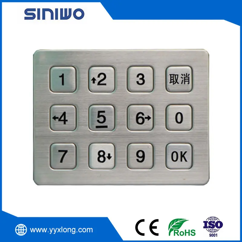 1. This personalized SINIWO 3×4 numeric industrial keypad, specifically designed for deployment on kiosks, is fabricated using superior stainless steel components. These materials bolster equipment safety and durability, enabling it to withstand relentless usage and harsh working conditions without compromising the integrity of the machine. The 3×4 numeric industrial keypad superior durability and additional security features are integral in improving kiosks performance and raising user satisfaction levels.
