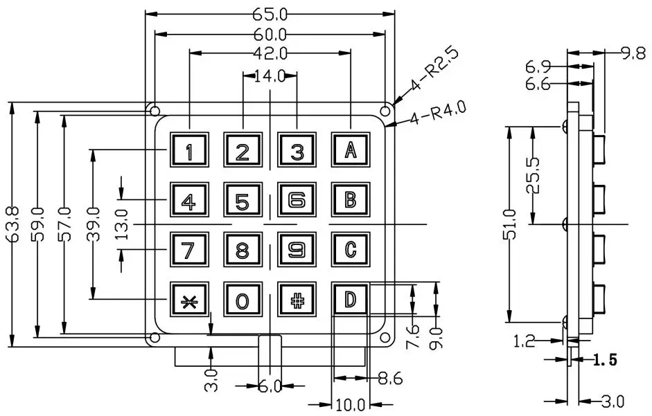 Feature of industrial 4×4 numeric keypad: