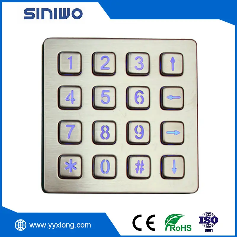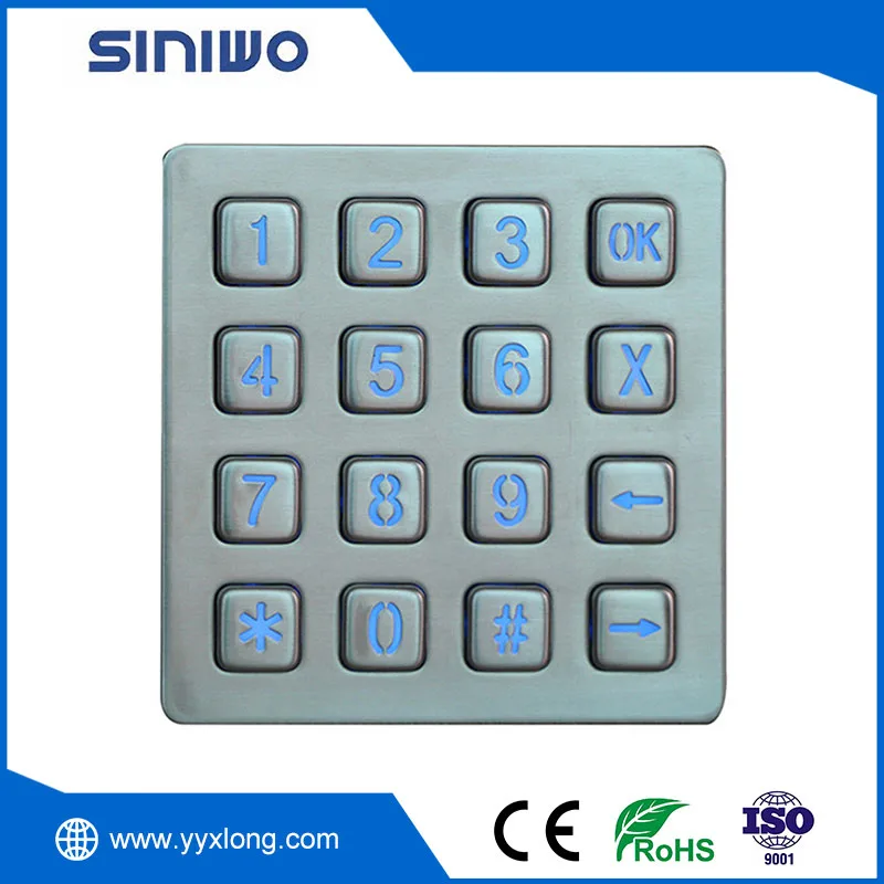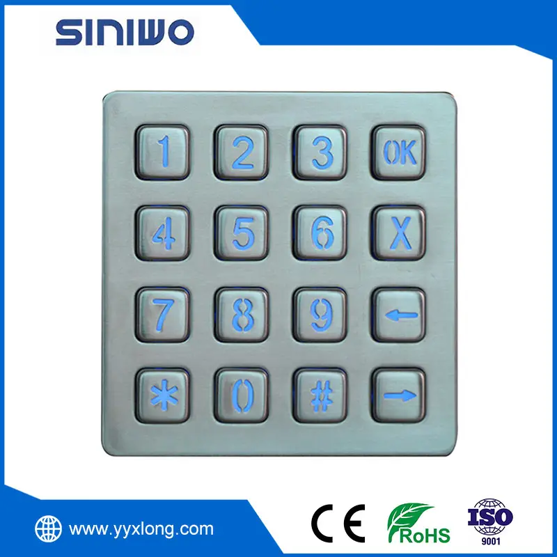 This industrial kiosk keypad of SINIWO made from high quality stainless steel, this keypad features a special round button design that meets the highest demands in terms of design, functionality, longevity and level of protection. We provide a variety of LED color options, which not only increases the personalization of the industrial kiosk keypad, but also facilitates use in dim environments such as at night. The LED of industrial kiosk keypad have the characteristics of customized, energy saving, durable, long service life, high luminosity and strong recognition.