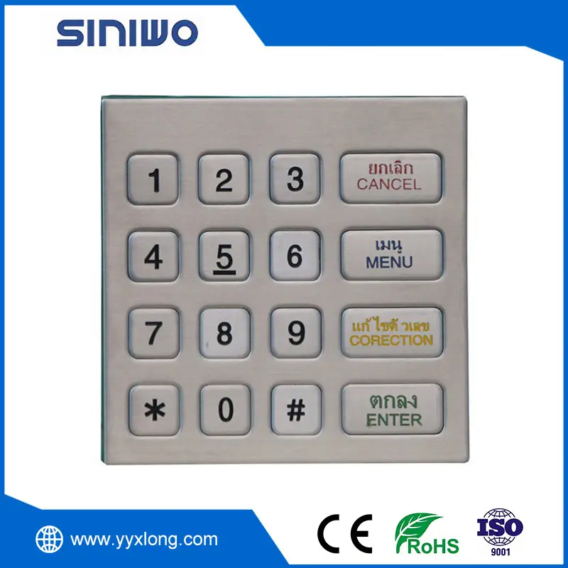 This 16 keys industrial vending machine keypad is mainly used in vending machines. In order to meet the diverse needs of consumers, the buttons layout and keypad interface can be customized. In addition to this, the signal of the keypad is optional, e. g. , RS232, RS485, USB, matrix design.