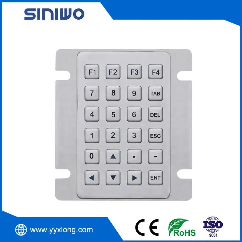 The Industrialnumeric keypad of SINIWO are laser engraved and painted with high-strength paint. SINIWO specially designed stainless steel industrial keyboards meet high requirements in design, function, service life, quality and high protection level. The panel and keys are made of high-quality stainless steel and have strong anti-destruction ability.Mainly used in access control systems and other public facilities.