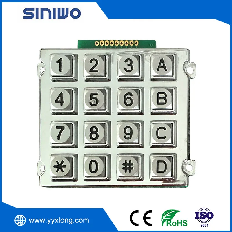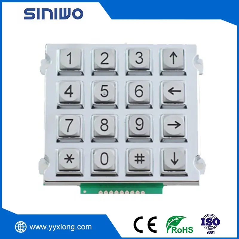 The button color of vandal proof industrial keypad is bright chrome or matte chrome. The key frame color can be customized according to customer requirements, and the interface can also be customized by customers.