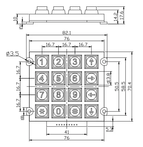 Vandal proof industrial keypad uses natural conductive silicone rubber, which is weather-resistant, corrosion-resistant, and anti-aging. It can adapt to high and low temperature environments and effectively avoid damage caused by temperature to the keys. It is very durable, has a long service life and is cost-effective. The vandal proof industrial keypad uses double-sided gold finger PCB, which can effectively resist oxidation and keep the keypad shiny and beautiful, with a certain texture.
