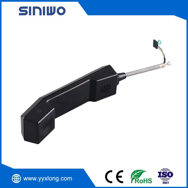 1. This waterproof telephone handset is original designed for traditional payphones by SINIWO with K style structure and metal joint at the armored cord ends. For outdoor payphones, how to improve the waterproof grade is very important factor to take into consideration. SINIWO updates the design with ultrasonic welding machine to combine the handset shell to improve the waterproof grade to IP67.